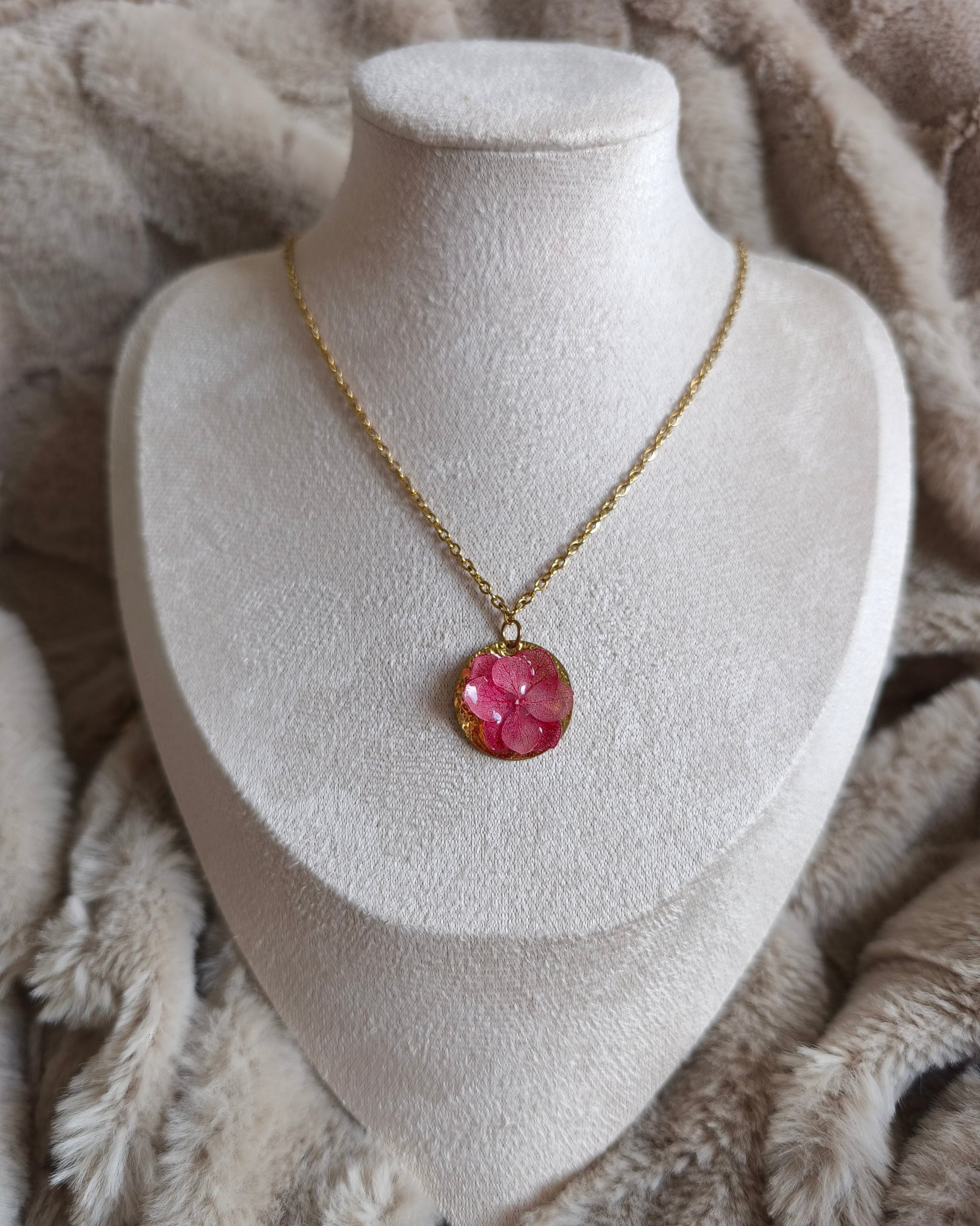 Pendentif en fleurs séchées et résine. Laissez-vous séduire par la poésie de la nature figée dans le temps. Ce pendentif unique renferme de véritables fleurs séchées délicatement capturées sous une fine couche de résine, pour un effet à la fois raffiné et intemporel. Monté sur une base en acier inoxydable, ce bijou allie douceur et durabilité, pour vous accompagner au quotidien sans ternir. Une touche florale et élégante, idéale pour sublimer chaque instant.